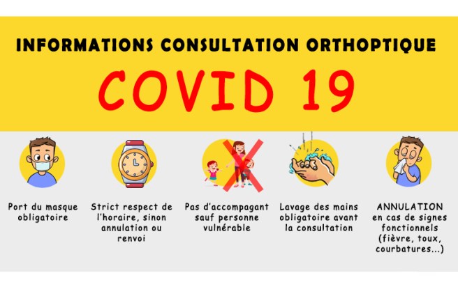 Les restriction sanitaires en cours n’impactent pas les rendez vous médicaux et paramédicaux. Il est même conseillé de ne pas suspendre ou retarder les dépistages et les soins. Aussi, les rendez vous orthoptiques sont maintenus.